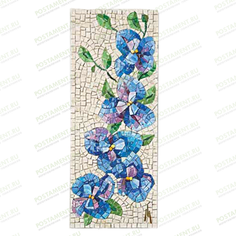 Красивая мозаика с голубыми незабудками на светлом фоне, может украсить могилу того, по кому вы сильно скучаете и никогда его не забудете. Это мозаичное панно показывает, как дорог был тот, кто здесь покоится. Памятник с такой мозаикой выглядит красиво, светло благодаря правильно подобранной цветовой гамме.