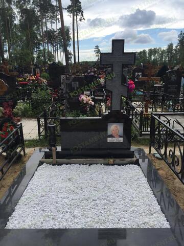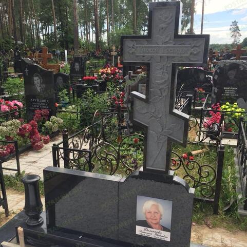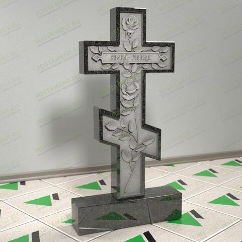 Красивый памятник, в виде шестиконечного креста на могилу. С лицевой стороны крест обработан фрезерным станком и на светлом фоне вырезаны розы и надпись – Упокой Господи. Крест с розами символизирует быстротечность бытия, его красоту и боль испытаний, которые человек проходит в жизни. Этот памятник предназначен для верующих, женщин и мужчин. Фотография умершего, дата, имя и фамилия располагаются отдельно от креста, на гранитной табличке.
