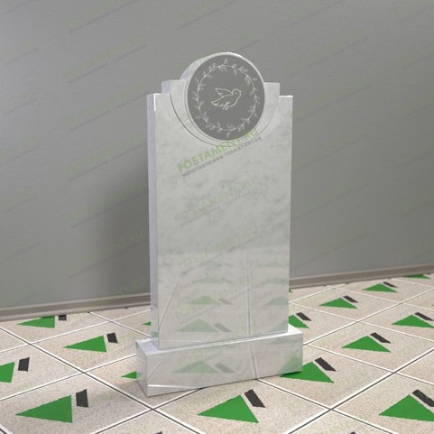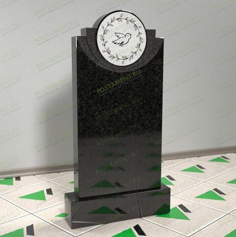 Красивый, памятник, со сложными фигурами, готовыми элементами оформления, по заводской цене. Прямая, вертикальная стела завершается плавными, вогнутыми линиями, поддерживающими идеальный круг, напоминающий солнце. Всё пространство круга оформлен пескоструем, в центре расположен голубь, а по краям – венок. Вся композиция наполнена смыслом, выражает скорбь по усопшему, надежду на вечную жизнь в Царствии Небесном. Памятник подойдёт на могилу усопших, не зависимо от их пола, возраста и конфессий.