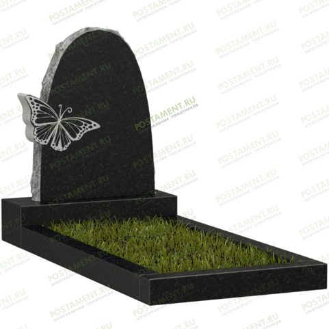 Детский памятник «корка» полуовальной формы декорирован полированной бабочкой с левой стороны стелы. Она раскрыла крылья и приготовилась к полёту. Бабочка символизирует красивую, яркую и чистую душу невинного ребёнка, так рано покинувшего этот бренный мир. Лицевая часть стелы ровно срезана и отполирована. На неё нанесут фото, даты и надписи. Можно сделать цветной портрет при помощи итальянской, долговечной краски, а текст покрыть сусальным золотом. Обратная сторона плиты обрабатывается художественным сколом, имитирующим природный камень (валун, скалу). Природный скол постепенно расширяется к основанию, что делает корку более устойчивой.
