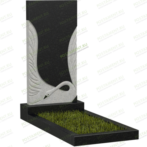 Вертикальный, резной памятник прямоугольной формы, на котором вырезан красивый лебедь с поднятыми вверх крыльями. Крылья обрамляют стелу по бокам, почти до самого верха, контрастно оттеняя зеркальную, чёрную гладь обелиска. Эту модель часто заказывают для мужских, классических захоронений. Прекрасный лебедь не только украшение, он является проводником и защитником души. Славяне верили, что смелая и гордая птица помогает самой богине смерти. Свободное пространство можно красиво украсить гравировкой с покрытием из сусального золота, серебряной или бронзовой краски. Или, можно заказать цветной портрет, написанный итальянской, несмываемой краской.