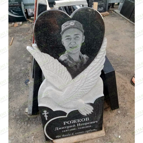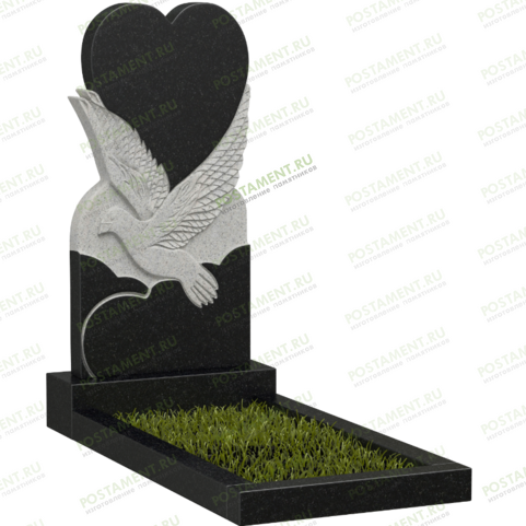 Этот красивый фигурный памятник – сердце между крыльев голубки, можно устанавливать на одиночные и двойные захоронения. Памятник голубь с сердцем имеет несколько значений. Первое, для семейного портрета – символ нерушимости любви между мужем и женой. Второе, для одиночного захоронения – символ Святого духа, невинности и чистоты души ушедшего в мир иной человека. На сердце гравируется чёрно-белый портрет или цветные портреты, написанные итальянскими, несмываемыми красками. Завершит оформление красивая надпись из бронзовых накладных букв, или надписи скарпелью.