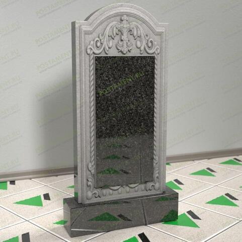 Оригинальная, наполненная аристократической утончённостью, вертикальная модель памятника. Монолитное изделие с прямыми сторонами, сверху венчает полукруглый, арочный купол с небольшими уступами – плечиками. Стела привлекает внимание игрой контрастных цветов. Светлый фон необработанной поверхности с выразительными резными деталями, обрамляет большой, чёрный прямоугольный участок для портрета и надписи. Заказать памятник можно на женскую или мужскую могилу. С помощью представленной модели можно благоустроить захоронение любимого человека, ушедшего в иной мир не только достойно, но и презентабельно, тем самым подчеркнув отношение родных к усопшему, показав их скорбные чувства.