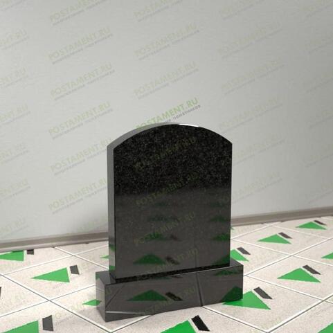Представленная модель является менее строгой разновидностью стандартного прямоугольного надгробия. Рекомендуется для установки на могилках детей, женщин и мужчин, а также домашних любимцев. Верх памятника плавно закруглен, поэтому он имеет сходство с небольшой аркой. Дугообразный край делает конструкцию более изящной и служит неплохим обрамлением для фотопортрета покойного. Под ним целесообразно поместить надпись и небольшую эпитафию, выгравировать цветок или крест. Все изображения, нанесенные на черный габбро, отличаются выразительностью и долговечностью, смотрятся красиво и торжественно.