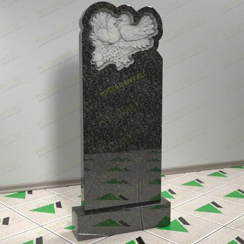 Вертикальный памятник на могилу, с ассиметричным фигурным навершием, внутри которого искусно вырезаны два голубка, олицетворяющих души усопших и их проводников в потусторонний мир. Ещё голуби символизируют любовь, мир и согласие, супружескую верность в семье. С помощью такого надгробного памятника можно отобразить мягкий характер, мудрость, нежность и добродушие, если это было свойственно усопшему при жизни. Устанавливают надгробие с резным голубем на мужские, женские и семейные захоронения.