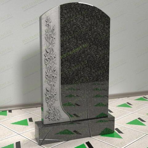 Представленная модель выполнена в форме стандартного вертикального памятника. Но от традиционного, классического надгробия его отличает полукруглая арочная вершина. Левая часть лицевой стороны стелы обработана фрезерным станком, на светлом фоне которого наши мастера вырезали объёмную ленту из цветов. Они не просто украшение стелы, где каждый символ обладает высокой смысловой насыщенностью. Цветы символизируют нежность, кратковременность земного бытия и вечный круговорот жизни. В них заложен символ надежды на возрождение и вечную жизнь. Эту стелу заказывают для женских и мужских могил.