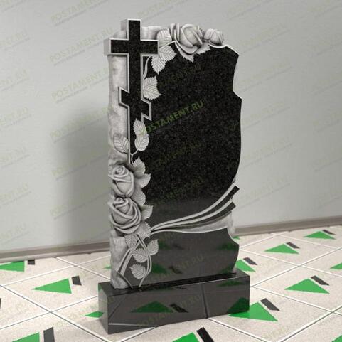 Памятник с розами и крестом № 12629 из гранита и мрамора