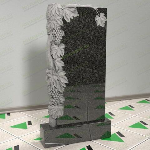 Вертикальный, классический памятник, с левой стороны украшает объёмная резьба виноградной лозы с крупными гроздьями винограда. Она будто бы обвивает надгробный камень, благодаря чему, монументальная конструкция приобретает воздушность и лёгкость. В христианстве Христос – истинная лоза, последователи – ветви её, духовная жизнь во Христе – это плоды, гроздья винограда. Виноградная лоза – евангельский образ Христа, единого источника вечной жизни для человека, которую Он даёт через причастие. Благодаря классической форме и красоте виноградной лозы, данная модель может быть использована на захоронениях как для мужчин, так и для женщин.