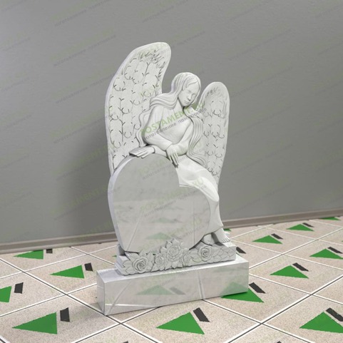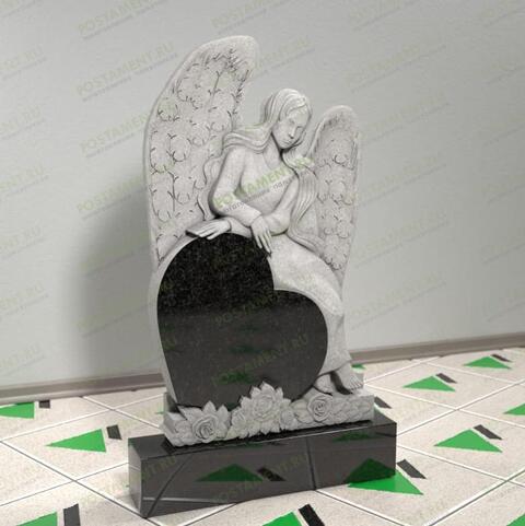 Ангел из гранита сердце с цветами 14362