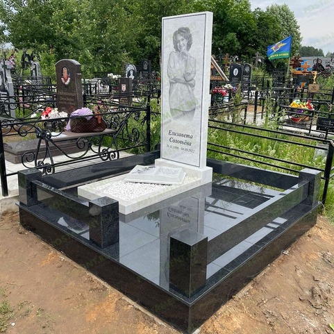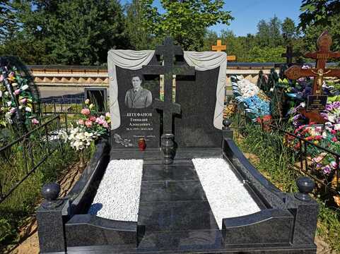 Гранитная плитка из Габбро Диабаза отлично подчеркнет классический вид захоронения, удобна для оформления захоронения как верхней поверхности, так и боковых парапетов.
