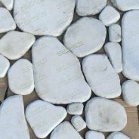 Галтованная белая брусчатка из мрамора Коелга отлично дополнит внешний вид мемориального комплекса как из темных так и из светлых видов гранита.