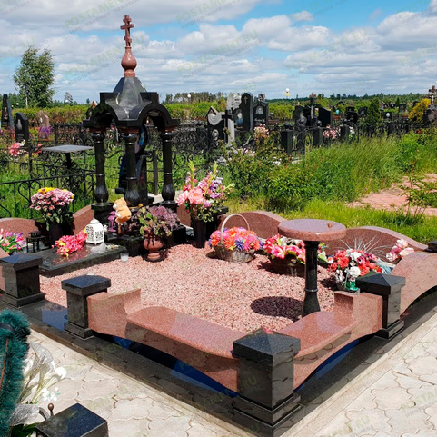 Оранжевый щебень из экологически чистого материала природных теплых тонов при благоустройстве могилы создает уютную атмосферу. Хорошо сочетается с зелеными и коричневыми гранитами.