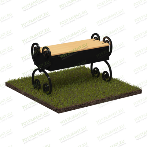 Скамейка с ящиком на могилу изготовлена из металла черного цвета. Лавочка выполнена из деревянных ламелей светлого оттенка и обработана специальными средствами, которые делают их устойчивыми к влаге и температурным перепадам. По нижней части вмонтирован хозяйственный ящик, который позволит хранить все необходимые инструменты для ухода за могилкой.