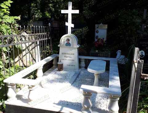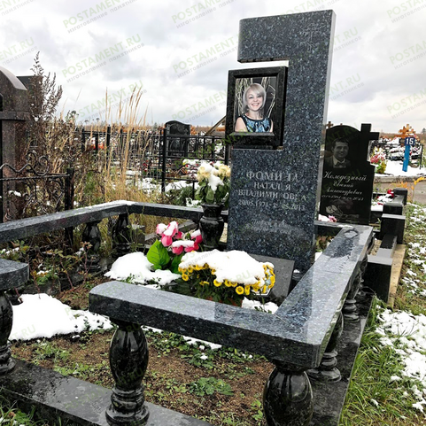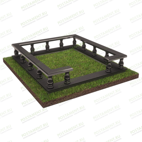 По периметру основания установлены 15 изящный фигурных балясин каплевидной формы высотой 30 см, придающие захоронению необычный и элегантный вид. На балясины крепятся парапетные камни сечением 15х5 см. Место входа на участок обозначено по центру одной из сторон.