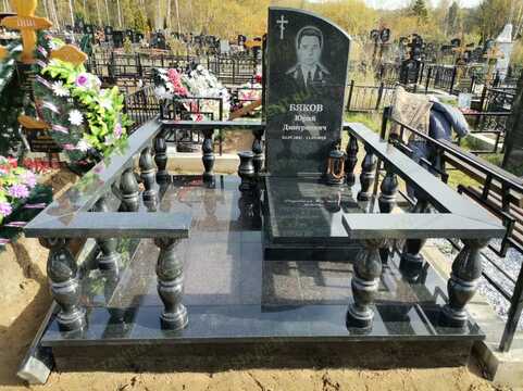 Гранитная ограда на кладбище изготовлена из карельского гранита темного цвета. По всей площади захоронения уложена гранитная плитка, что создает презентабельный вид и упрощает уход за участком.