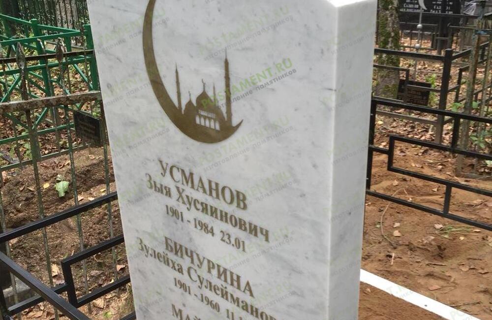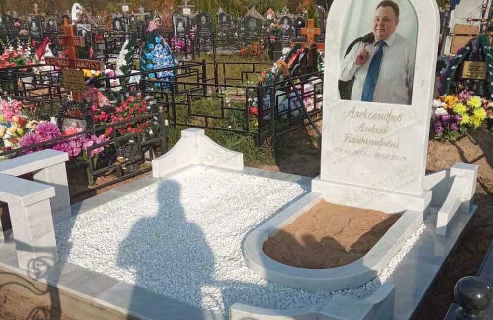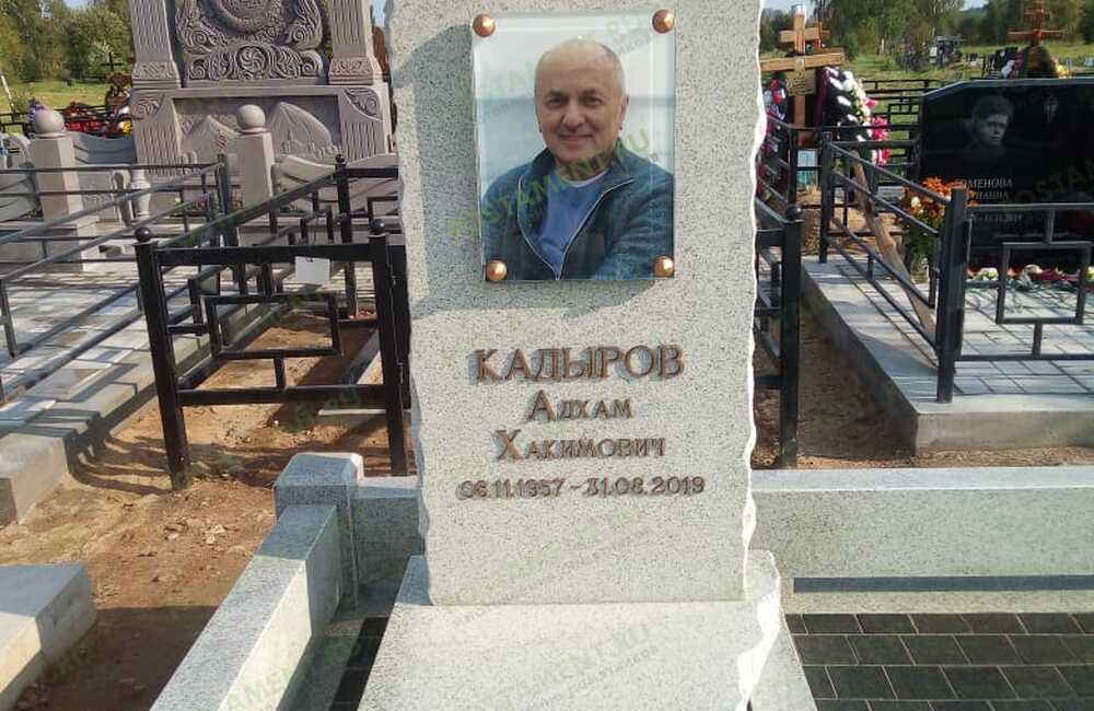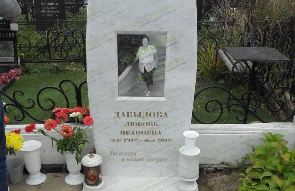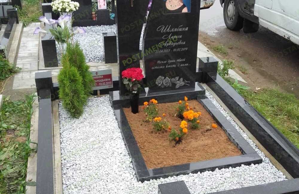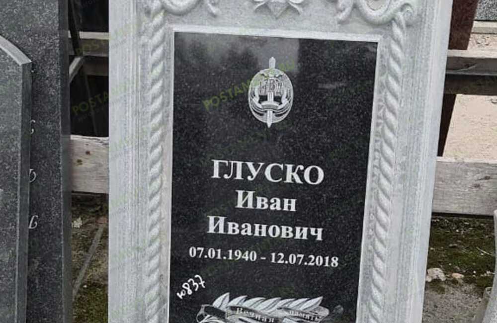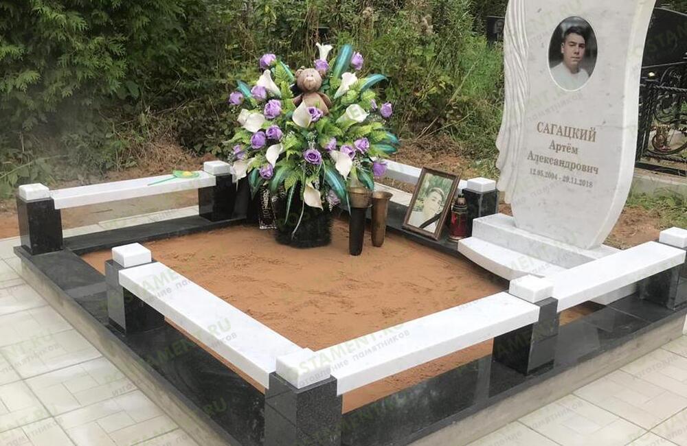 Памятнтк из мрамора Коелга с черно-белой керамикой