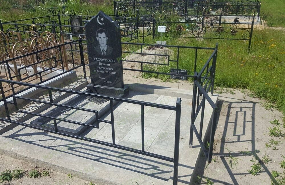 Памятник мусульманский с оградой и тротуарной плиткой