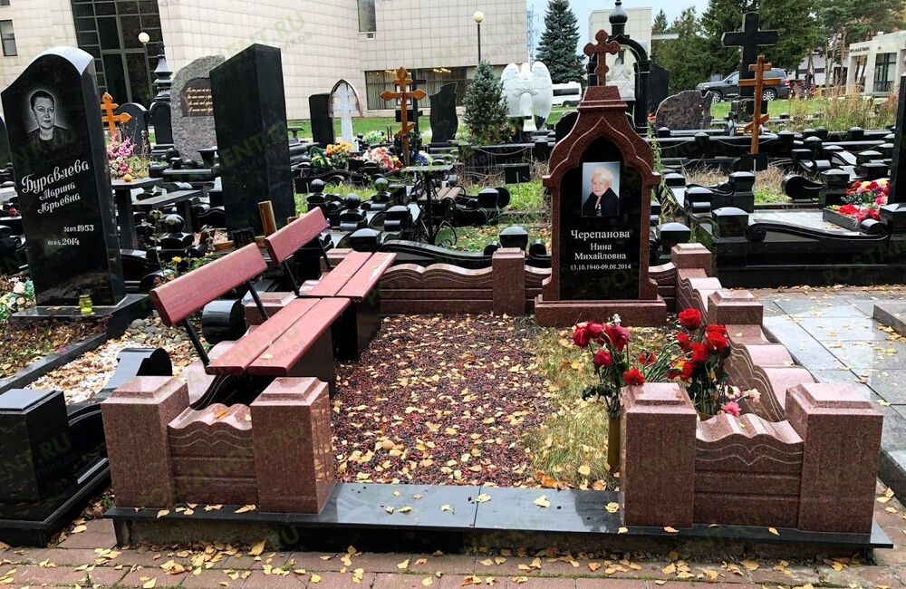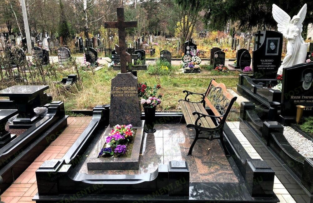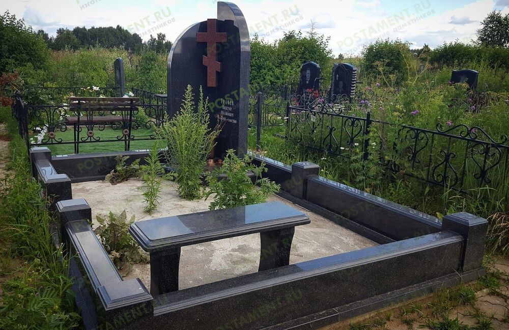 Гранитный комплекс с крестом, цоколем, скамейкой