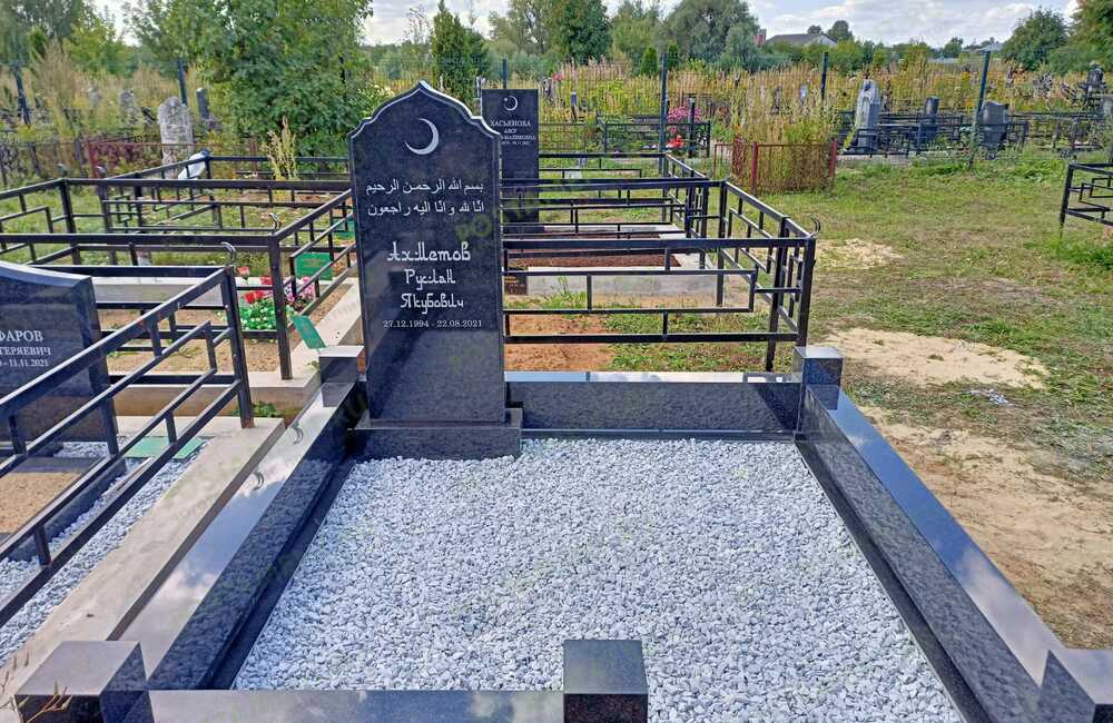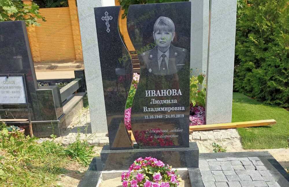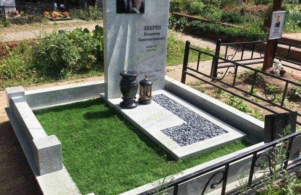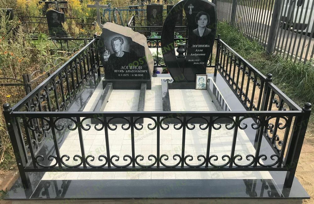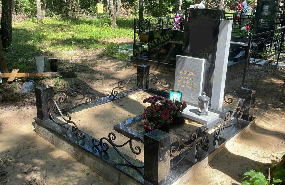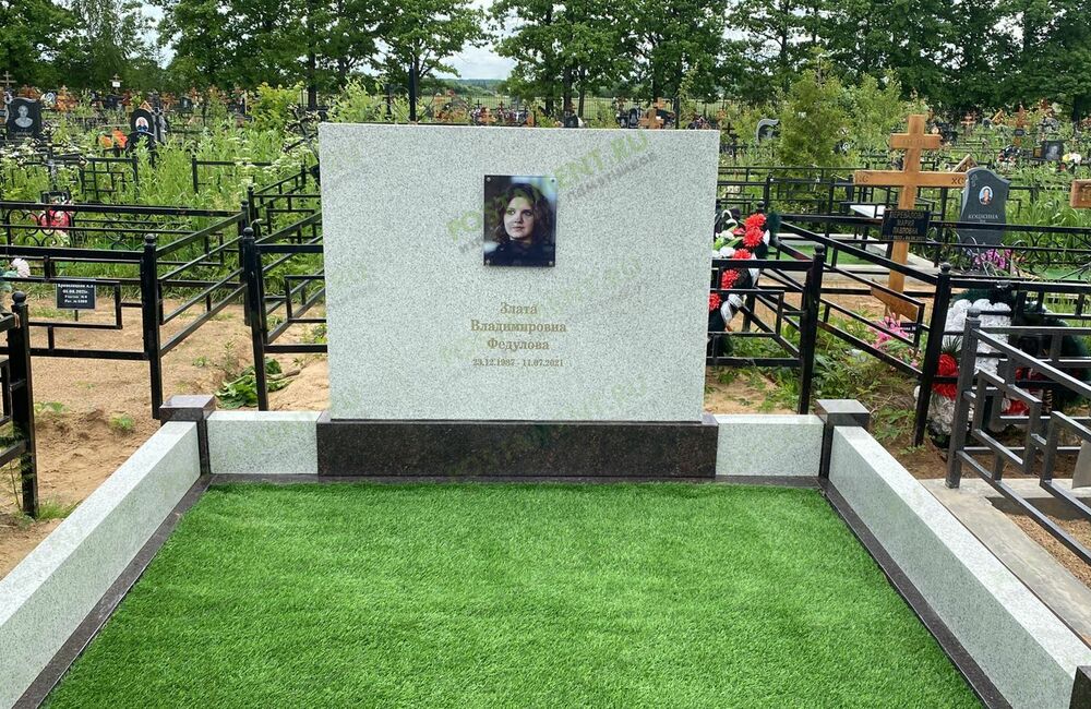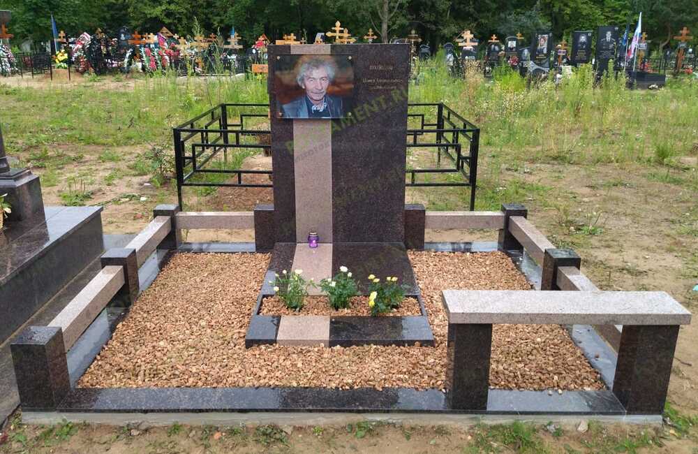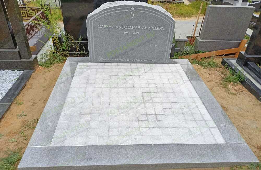 Комплекс из Дымовского и Куртинского гранита со стеклом и инкрустацией креста и букв