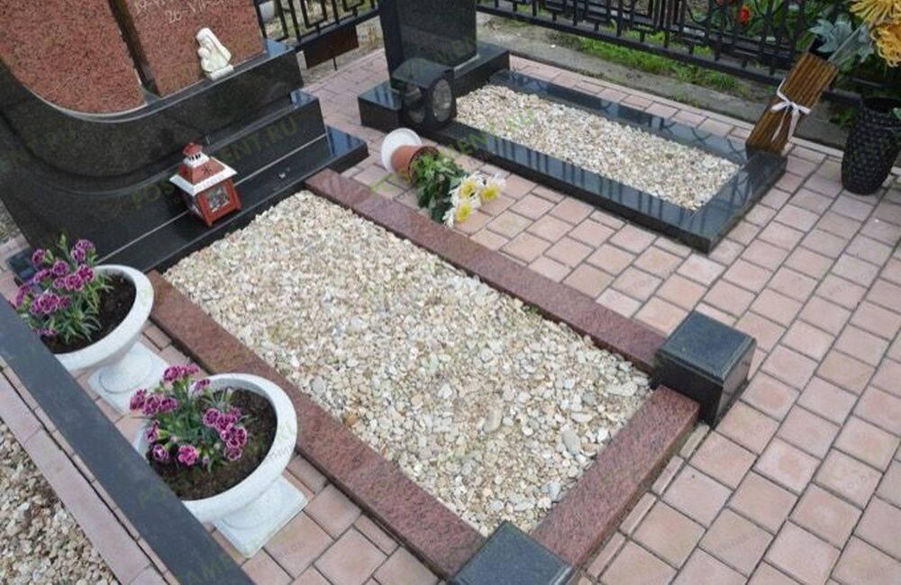 Цветник из красного и черного гранита