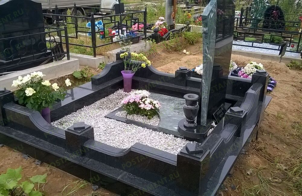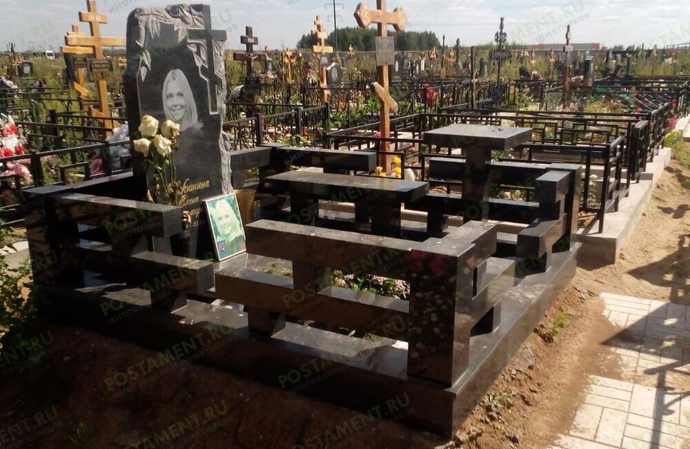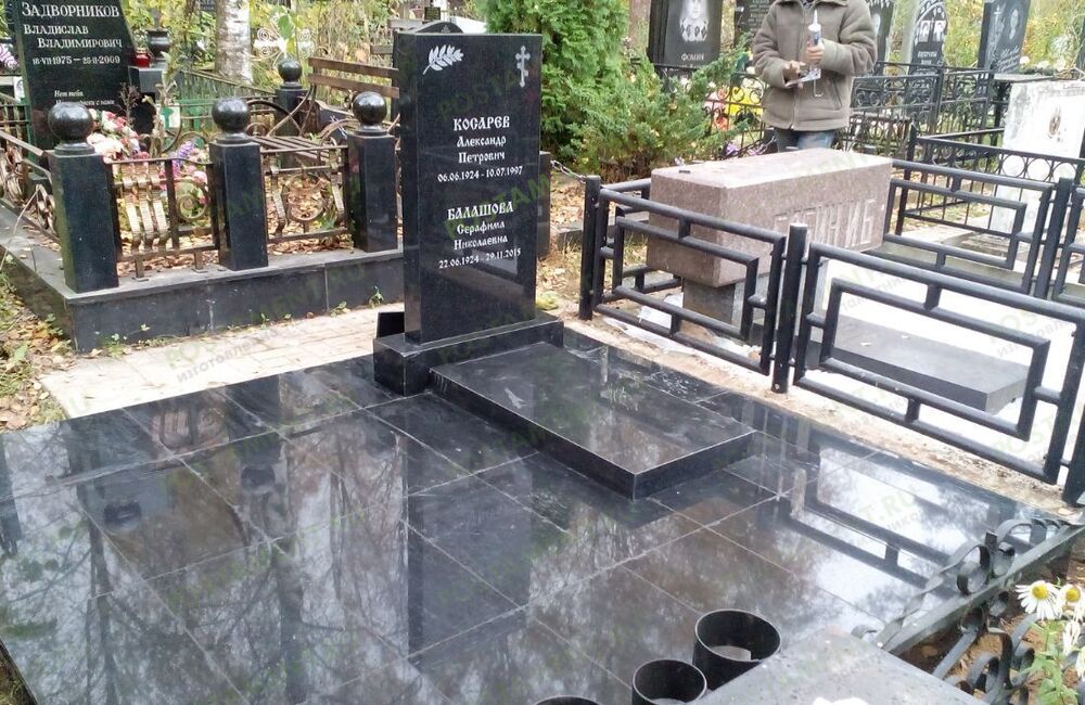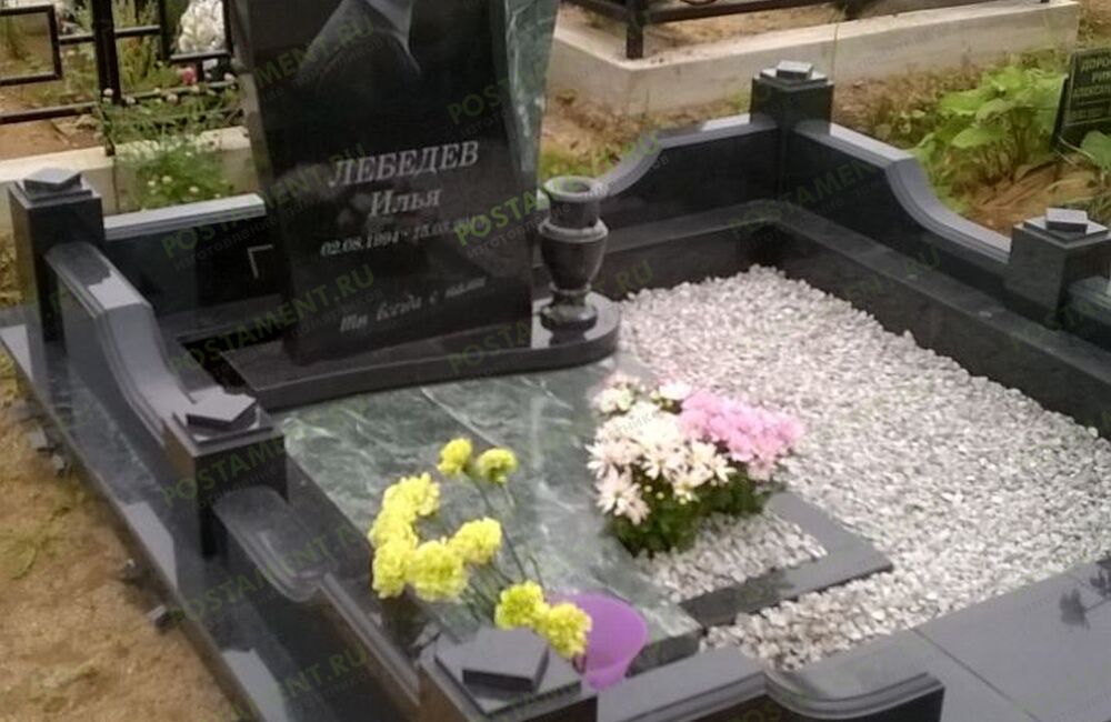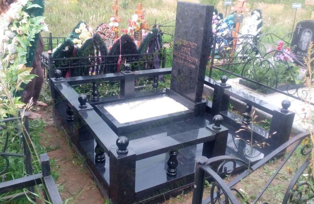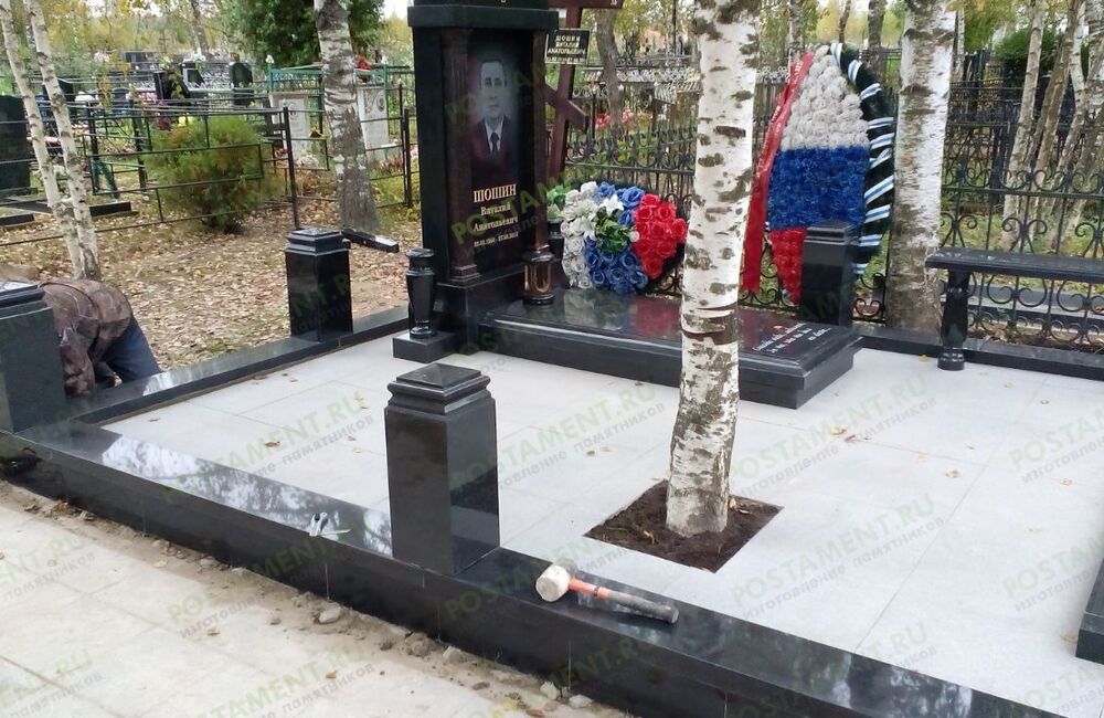Ритуальный комплекс: могила облицована чёрным гранитом
