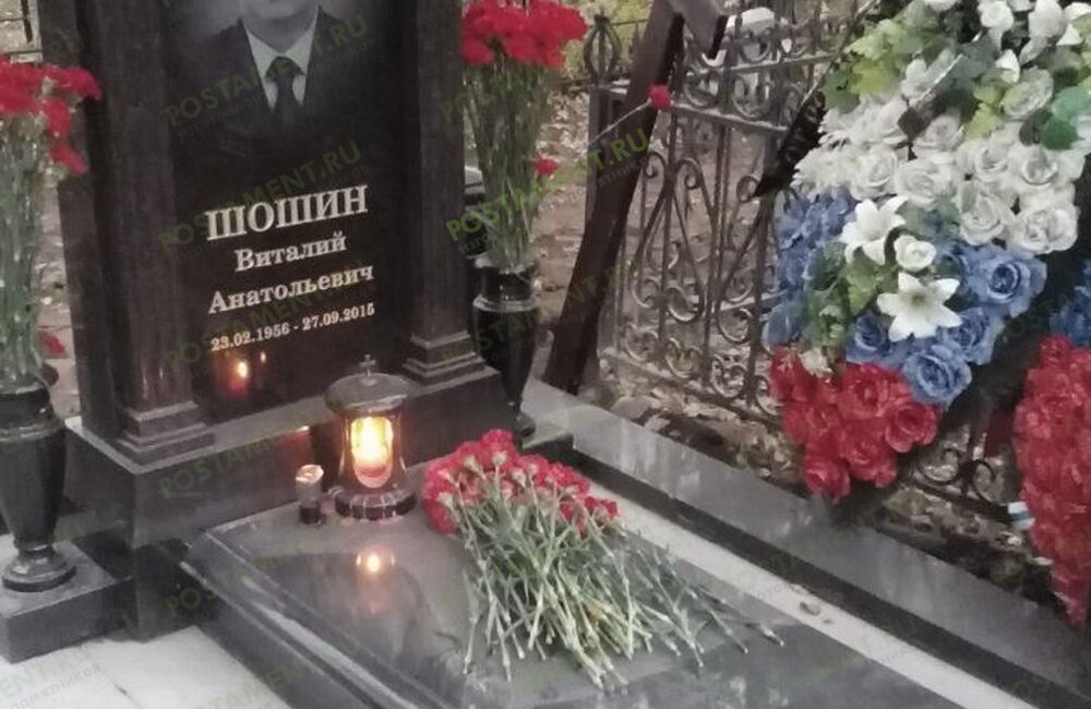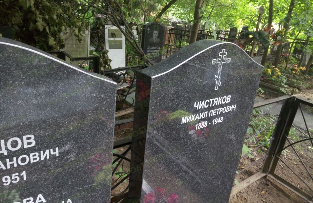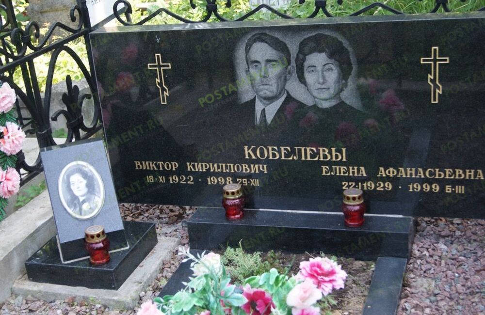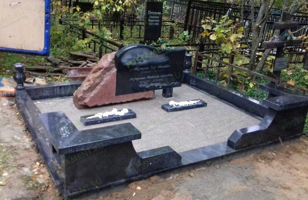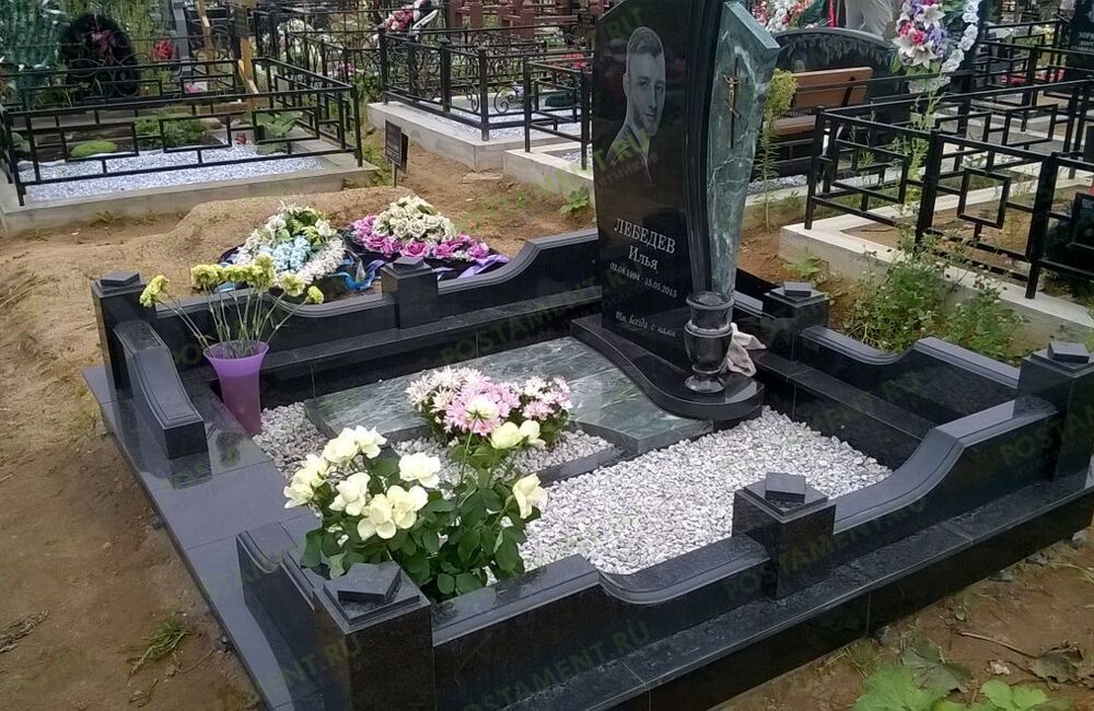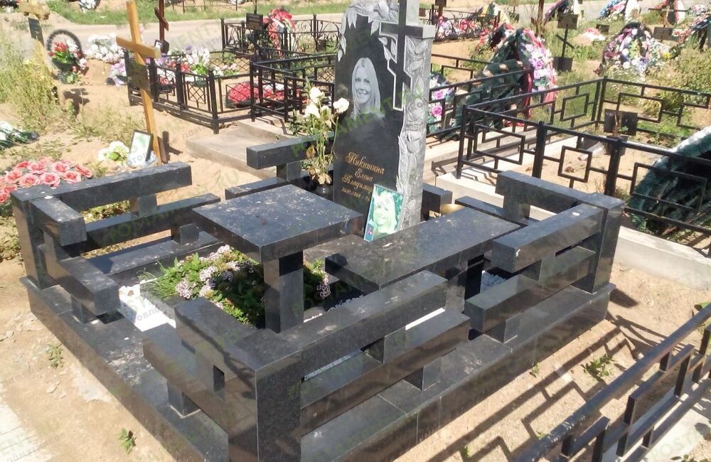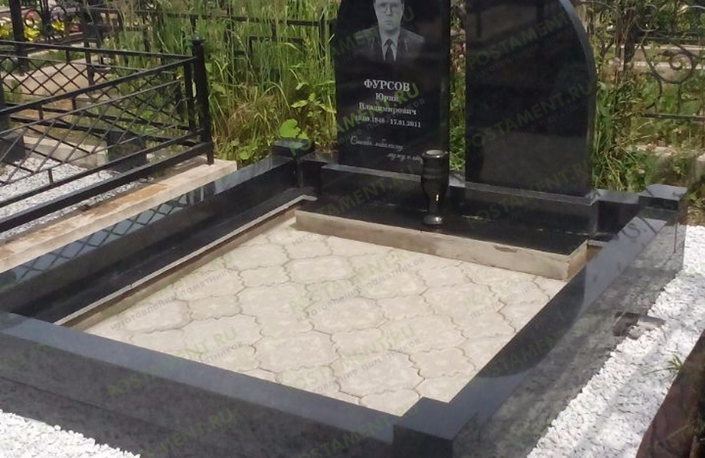 Ритуальный комплекс: могила облицована чёрным гранитом